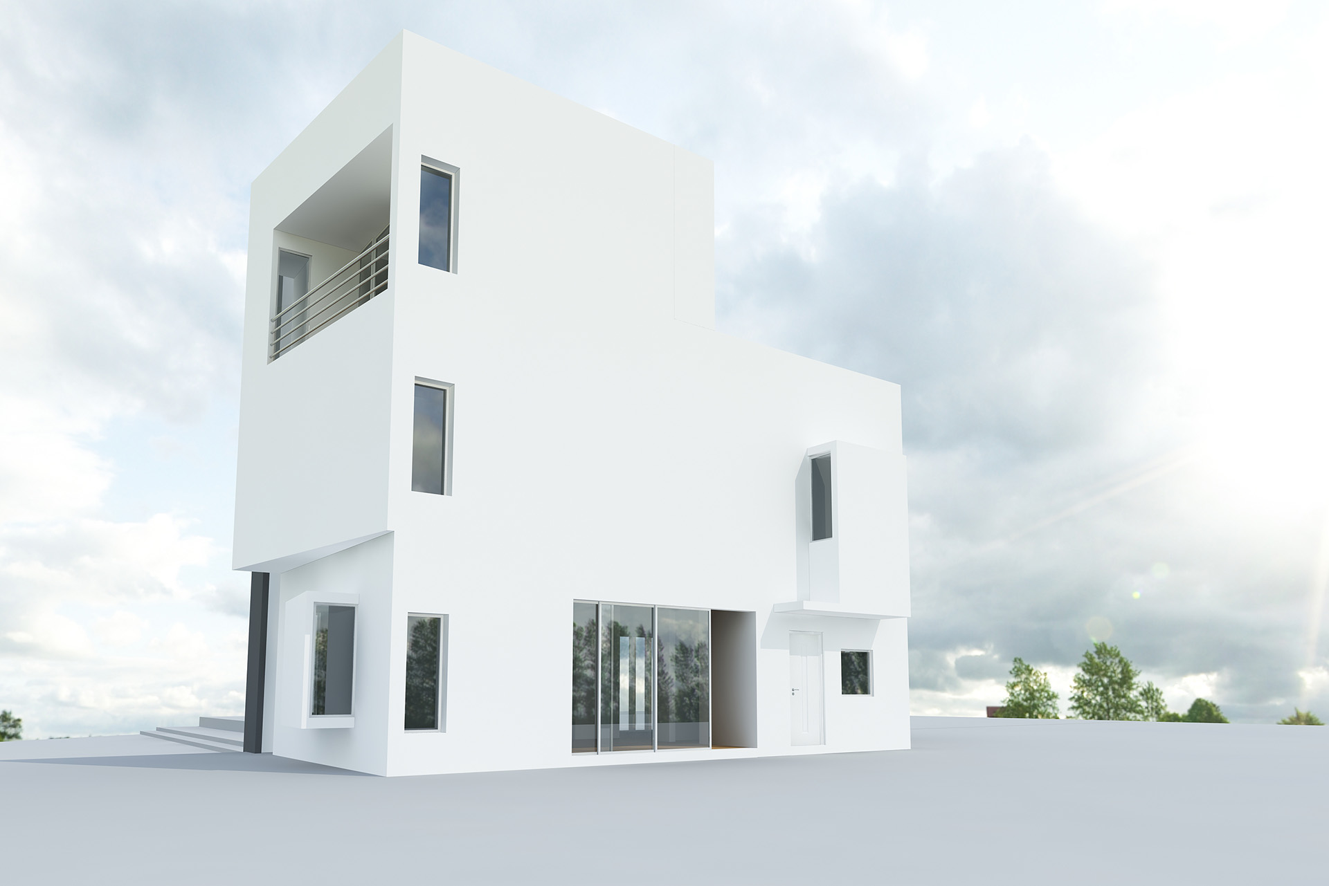 Large windows are strategically incorporated into the structure, flooding the interiors with natural light and offering a seamless connection to the outdoors. This thoughtful approach not only elevates the aesthetic but also enhances the functionality of the space, making it a perfect example of minimalist yet practical architecture.