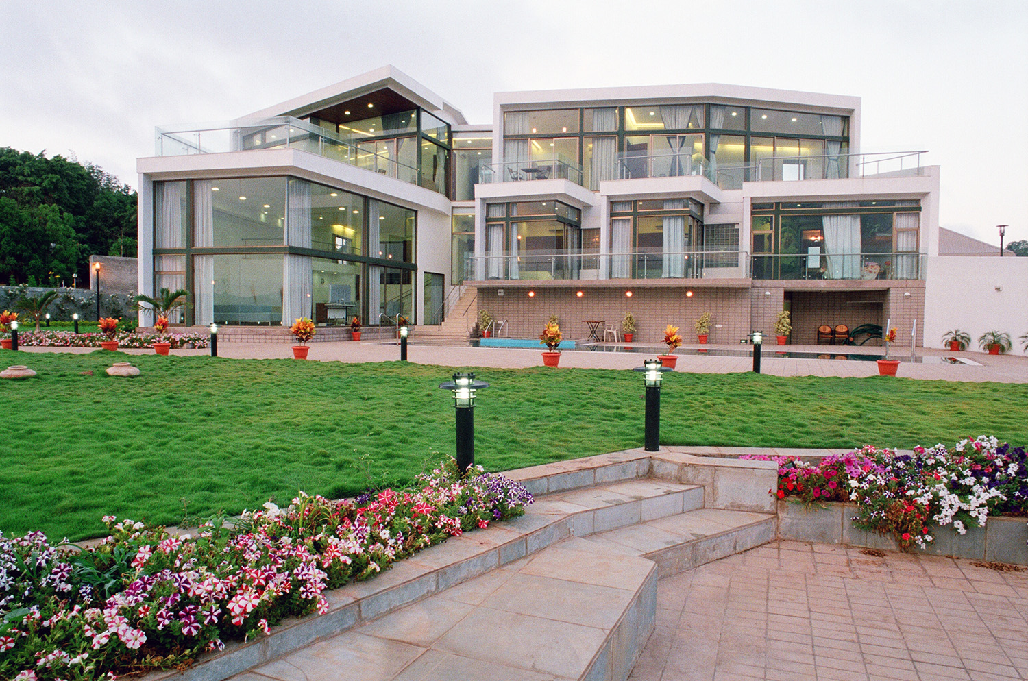 The Khandala bungalow is a modern luxury retreat that harmonizes bold architectural design with the stunning natural beauty of its surroundings. Featuring expansive glass façades and a multi-level layout, the villa offers breathtaking views of the Khandala valley and a nearby waterfall, creating an open, tranquil ambiance.