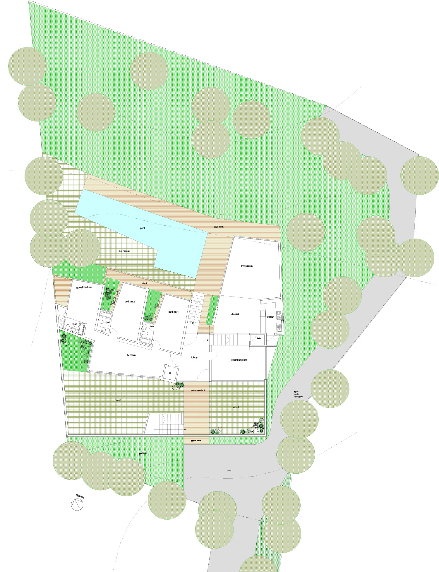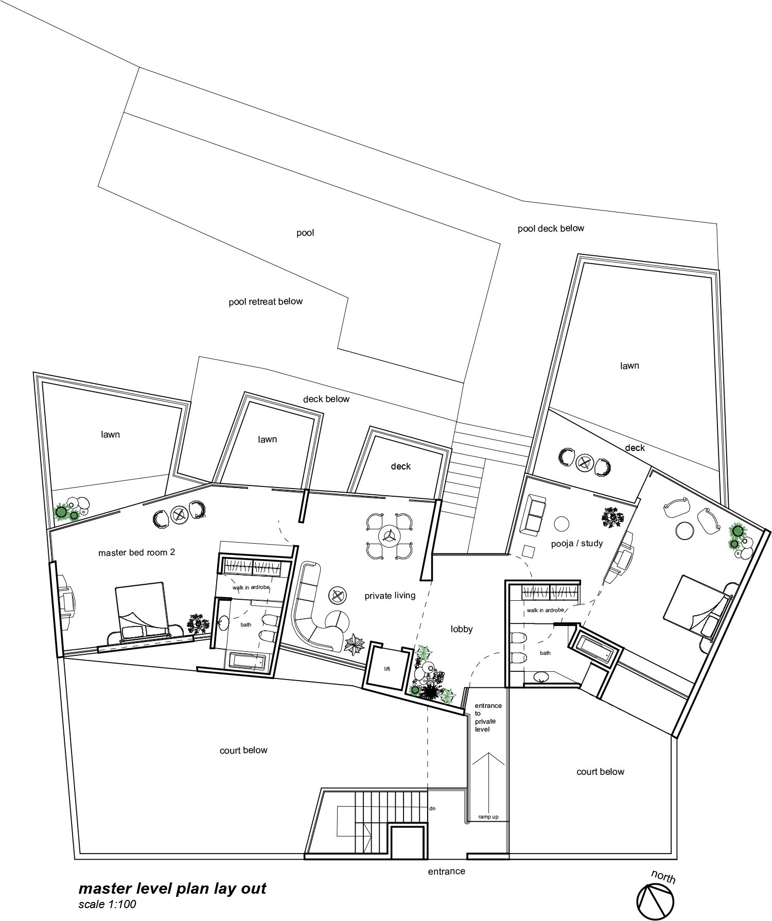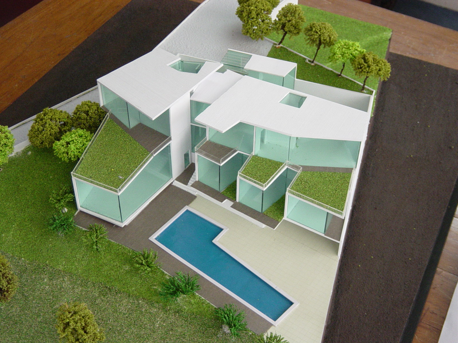 Green terraces and sloping lawns not only extend natural beauty into the home but also provide energy-efficient insulation. Double-height interiors and floor-to-ceiling windows flood the spaces with light, amplifying the sense of elegance and grandeur.